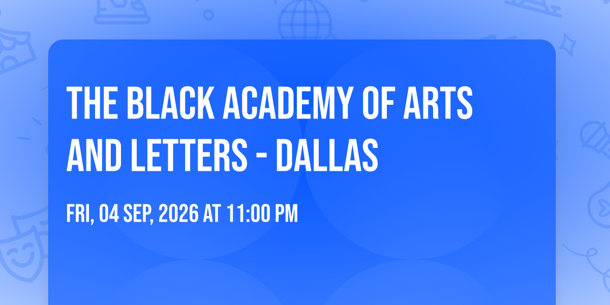 📍 Location: 32.7275, -96.7178🎉 Welcome to The Black Academy of Arts and Letters - Dallas, where the impossible becomes possible and dreams take flight! 🏛️ Join us at Texas Horse Park in the heart of Dallas, TX for an event that will redefine your expectations. 📅 On September 4th, 2026 at 11:00 PM, witness the transformation of space and time into something truly magical. ✨ It's a curated experience combining the best of innovation, entertainment, and community spirit, creating moments that will be remembered for years to come. Whether you're a first-time visitor or a seasoned enthusiast, prepare to be amazed. 🎊 Book now to ensure your place in this unforgettable experience!