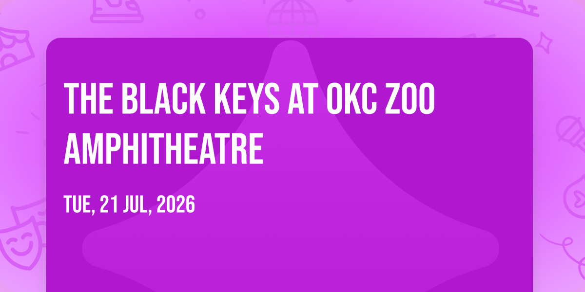 🎉 Welcome to The Black Keys at OKC Zoo Amphitheatre, where dreams come alive and possibilities are endless! 🏛️ Join us at OKC Zoo Amphitheatre in the heart of Oklahoma City, OK for an event that defies expectations. 📅 On July 21st, 2026 at 07:00 PM, be part of something truly extraordinary as we bring together innovation, entertainment, and pure magic. ✨ Every aspect has been carefully designed to ensure an unforgettable experience for all our guests. Whether you're seeking adventure, inspiration, or simply a break from the ordinary, this event promises to deliver beyond your wildest dreams. 🎊 Prepare for a journey into the extraordinary!