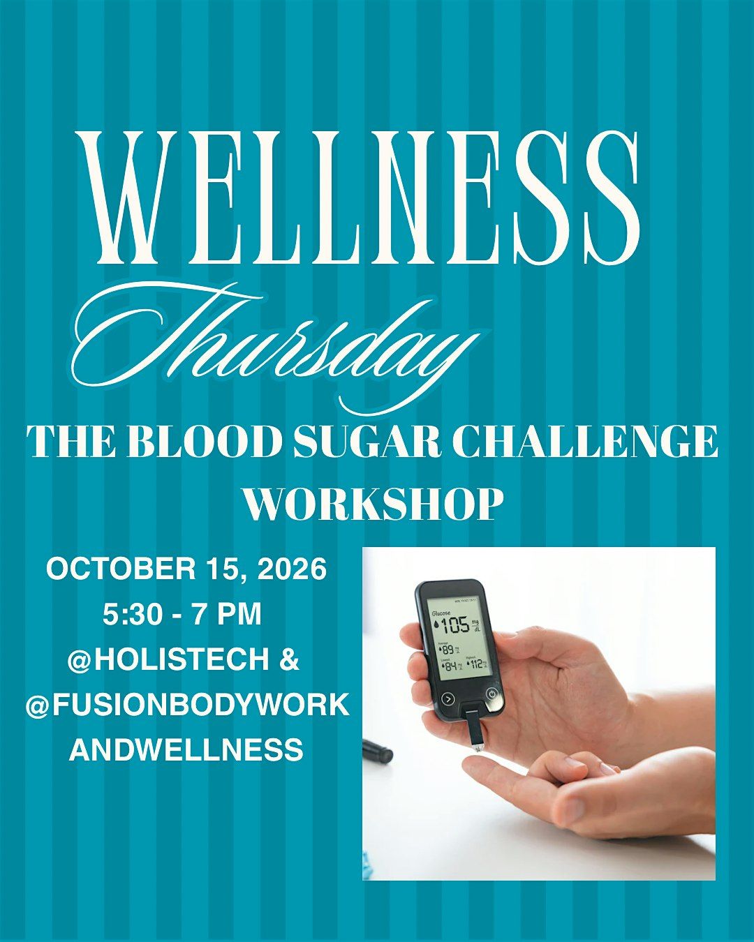 Ready to take control of your health? Join us in person for an exciting workshop all about mastering your blood sugar! This is your chance to learn practical tips, meet others on the same journey, and have fun while boosting your wellness. Don't miss out on this interactive experience designed to empower you with better habits. See you there!