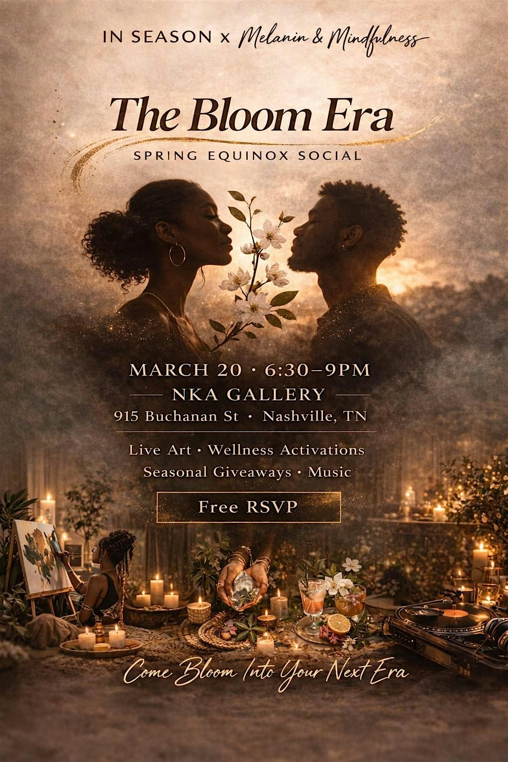 Hosted by In Season x Melanin & Mindfulness 📍 NKA Gallery 🗓 March 20 | 6:30–9:00 PM 🎟 Free with RSVP