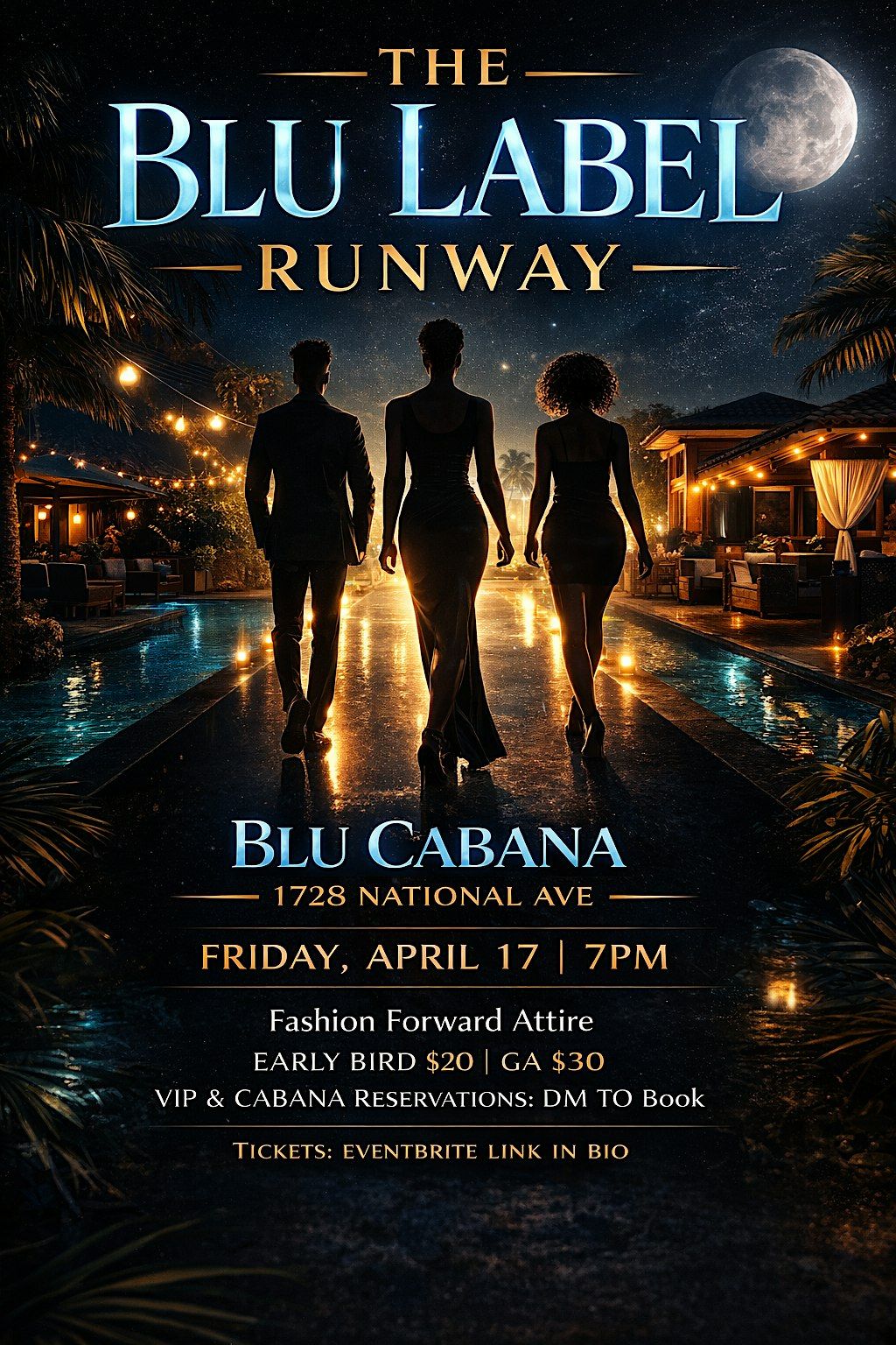 The Blu Label Runway is an exclusive open-air experience set in a lush resort-style oasis at Blu Cabana—bringing together designers, models, photographers, artists, and tastemakers for one unforgettable night.