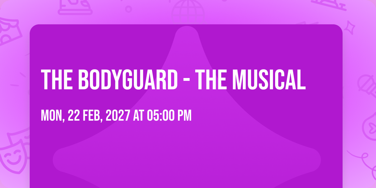 🌟 Be part of history at The Bodyguard - The Musical, an extraordinary gathering that will captivate your imagination! 🏛️ The prestigious Centennial Hall - AZ in Tucson, AZ sets the stage for an unforgettable experience on February 27th, 2027 at 05:00 PM. ✨ They are bringing together the finest elements of entertainment and innovation to create moments that will take your breath away. From the moment you arrive, you'll be immersed in an atmosphere of wonder and excitement. 🎯 This carefully planned event ensures every guest experiences something truly special. 🎊 Early booking is recommended for this must-attend event of the season!http://maps.seatics.com/CentennialHallAZ_EndStage_2025-08-06_2025-08-06_0230_08062025_090737_SVGC_tn.png