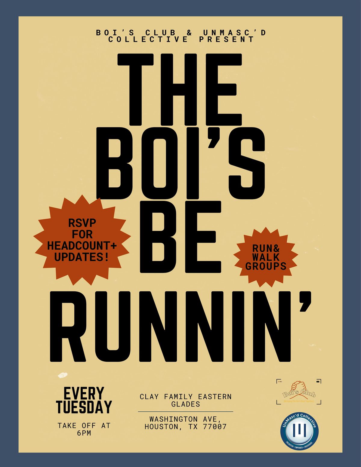Weekly Walk Run Club with Unmasc'd Collective! Come join us for some safe and inclusive exercise or just to enjoy the fresh air.
