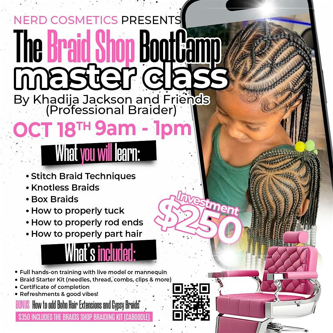 β¨ Learn stitch, knotless & box braids + pro techniques at The Braid Shop BootCamp! Hands-on training, kit & certificate included! βAgenda