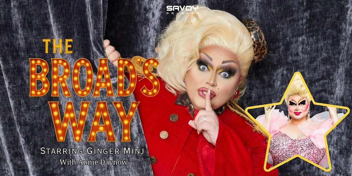 Step aside, Patti, it's Ginger's turn! The Broad's Way is a dazzling, high-camp "one-woman(ish)" show starring drag superstar and vocal powerhouse Ginger Minj, featuring special guest Annie Daynow. It is part concert, part confessional, and all charisma, uniqueness, nerve, and talent.