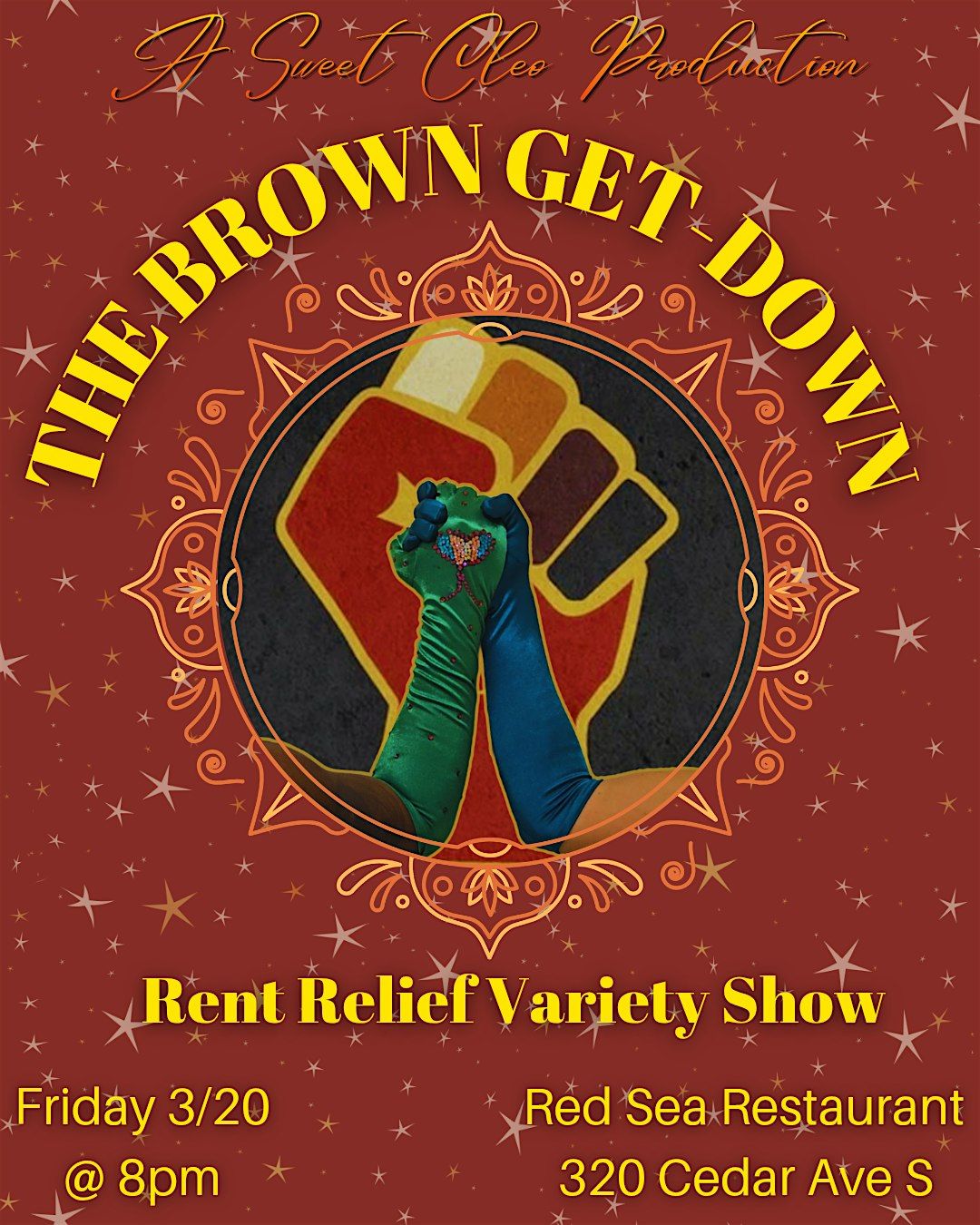 The Brown Get-Down! Rent Relief Variety Show features an all-BIPOC cast and crew who are bringing their boldest, most unapologetic selves while serving a heaping helping of cultural pride, political rage, and defiant joy. Join us for an unforgettable night of burlesque, drag, live music, comedy, puppetry, and community.