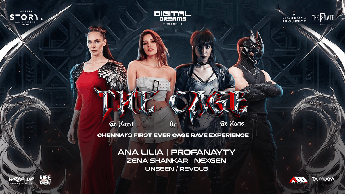 THE CAGE – Chennai’s First Ever Cage Rave ExperienceStep into an electrifying new dimension of nightlife as The Cage brings a raw, high-energy rave experience like never before to Chennai. Designed to break boundaries and push the limits of sound, visuals, and atmosphere, this is not just a party - it’s an immersive underground movement.Headlined by Profanayty, along with a lineup of powerful supporting acts, expect an intense fusion of music, lights, and a charged crowd that thrives on energy. The cage-inspired setup creates a unique, immersive environment where the audience becomes part of the experience.Whether you're a hardcore music lover or someone looking to experience something completely new, The Cage promises a night of pure adrenaline, unfiltered vibes, and unforgettable moments.Enter the cage. Feel the energy. Go hard or go home.