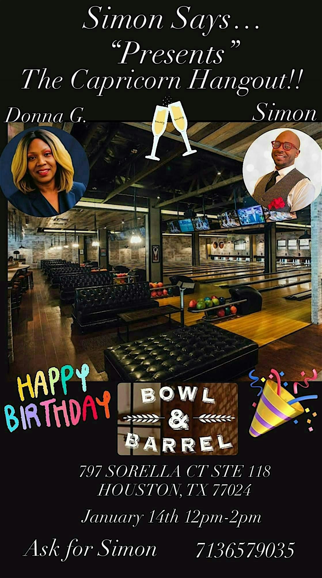 Welcome to The Capricorn Hangout! Lets Celebrate at Bowl & Barrel on January 14, 2026 at 12:00 PM (Central Time)! 🎉 Come join us for a fun-filled day celebrating all things Capricorn! Whether you're a die-hard Capricorn or just love a good time, this event is for you. Get ready for mid day bowling, food, and great company. Don't miss out on the chance to connect with fellow Capricorns and others to make new friends or business partners. Mark your calendars and get ready to party! See you there! 🥳