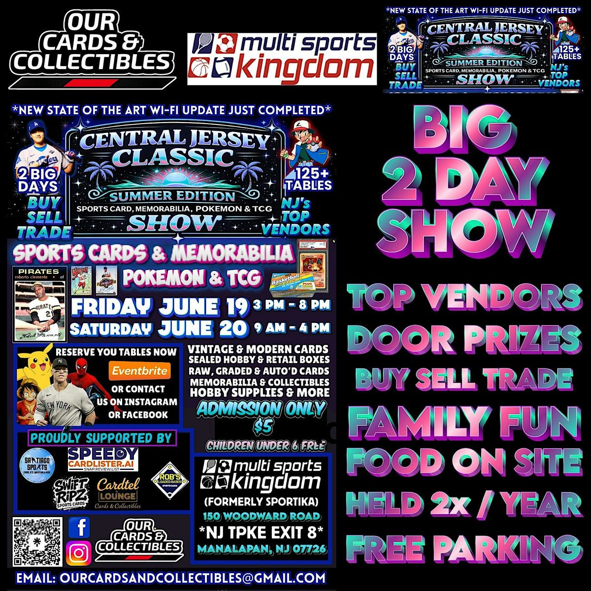 OUR CARDS AND COLLECTIBLES THE PROMOTER OF the OLD BRIDGE MONTHLY FRIDAY NIGHT SPORTS CARD AND POKEMON MONTHLY CARD SHOW is PROUD TO BRING YOU THiS 14k sq. ft. showcase of Sports Cards, Memorabilia, Pokemon, TCG and Much more. If it's sealed product, raw or graded singles, sets, Vintage, Modern Sports, Pokemon, TCG, Marvel Cards, Non Sports Cards this show will have it all. Bring your cards to sell or trade. Many of the vendors are waiting with Cash on the spot for your cards. Thats right cash for your unwanted cards and collectibles at the Central Jersey Classic 2 day Card Show.