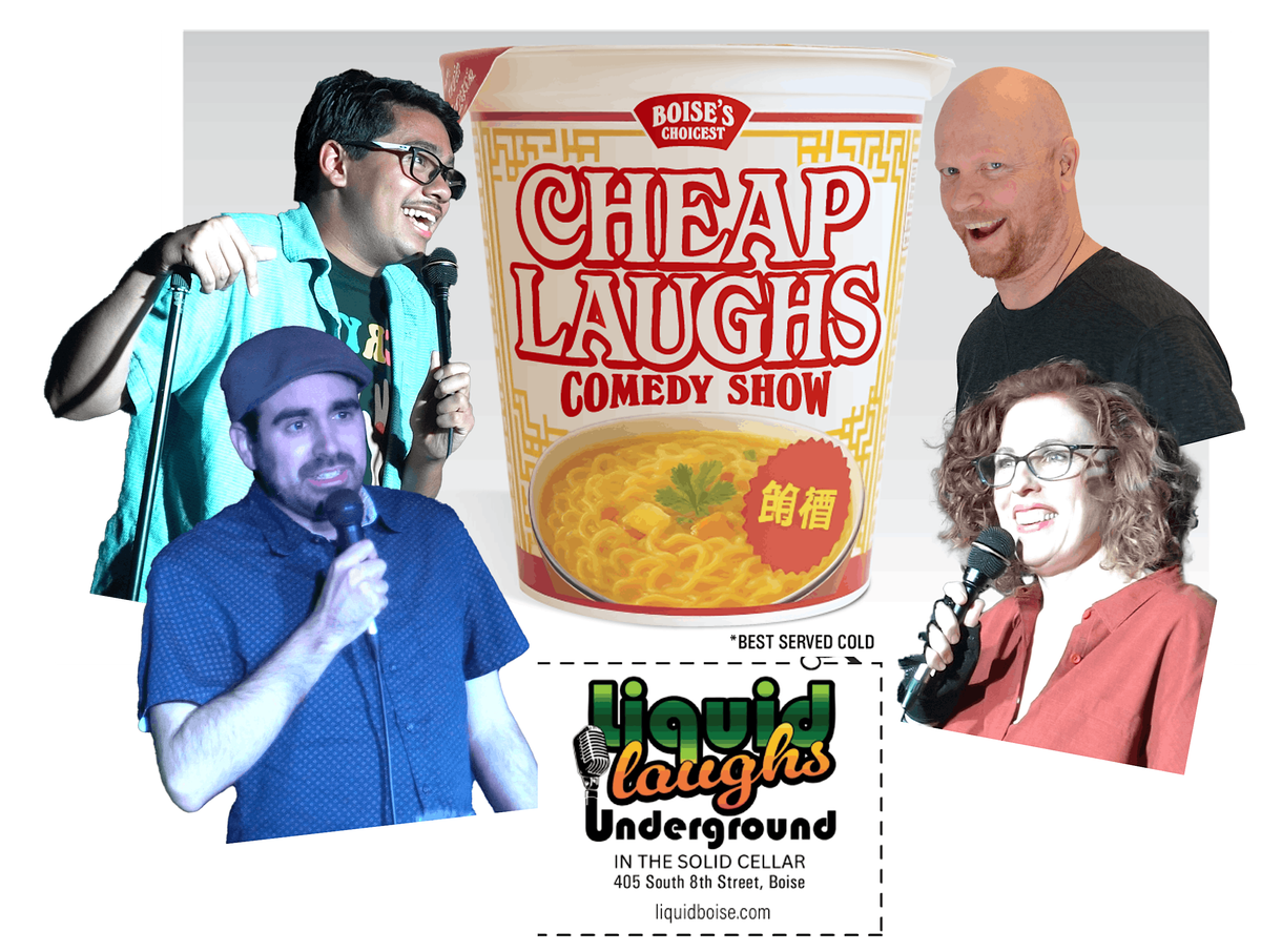 Get ready for a night of big laughs at small prices at the Liquid Lounge in downtown Boise! The Cheap Laughs Comedy Show brings together a killer lineup of local talent guaranteed to keep you rolling. OK, not a money-back guarantee, but we're pretty sure we could guarantee that if we had to.