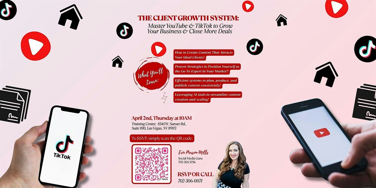 Join us for The Client Growth System—a powerful, hands-on session designed to help you master YouTube and TikTok while incorporating Title & Escrow insights to grow your business and close more deals.