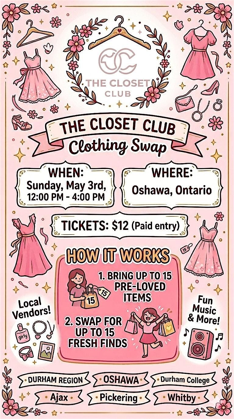 The Club is OFFICIALLY Open! 🎀✨ Get ready to refresh your wardrobe sustainably! We are so excited to announce that tickets for The Closet Club’s launch event are officially LIVE on Eventbrite! 🎟️ Join us for an afternoon of fashion, community, and curated local shopping right here in Oshawa. Whether you’re looking to trade in your pre-loved favorites or shop unique finds from local creators, this is the place to be.