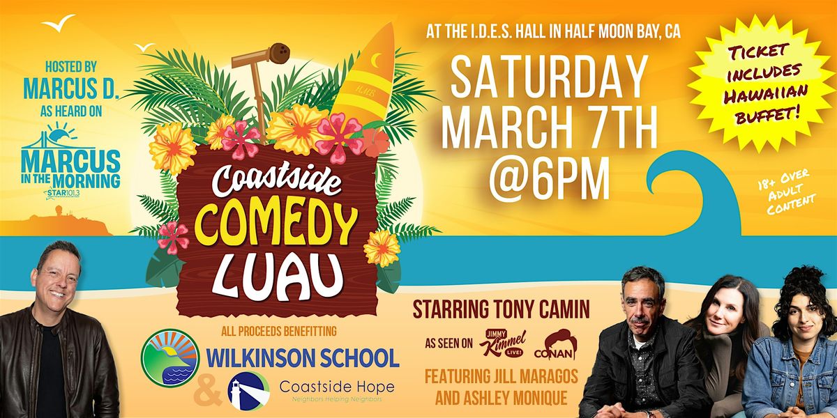 It's comedy, community, and Hawaiian food plus an auction to benefit Wilkinson School and Coastside Hope.18 and over.About this Event