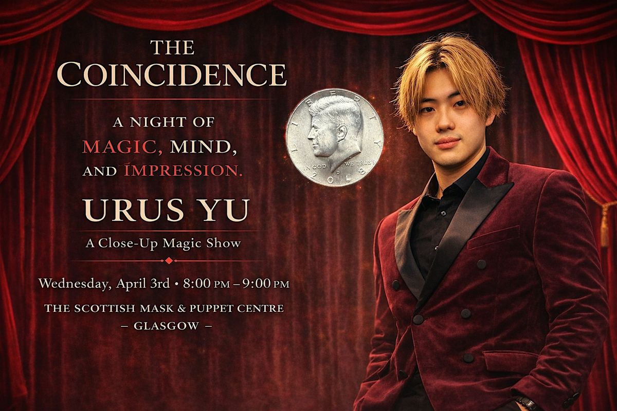 Join magician Urus Yu for a special preview performance of The Coincidence — a one-hour close-up magic experience built around the elegance and mystery of coin magic.