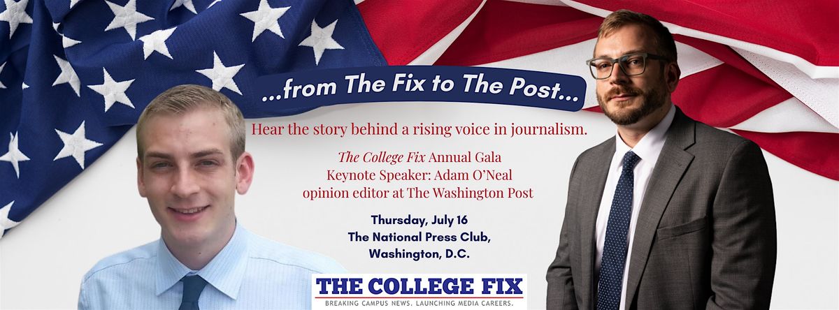 Celebrate with us at The College Fix Annual Gala on July 16, 2026, at 6:00 PM (EDT) at the National Press Club. Dress to impress and enjoy an evening featuring keynote remarks from Fix alumnus Adam O’Neal, opinion editor at The Washington Post and a rising voice in journalism.
