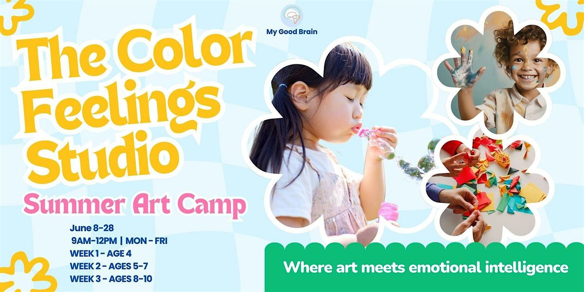 The Color Feelings Studio is a week-long summer art camp where kids ages 4โ10 explore emotions through color, creativity, and hands-on art-making. Each day of camp is anchored to a color and a feeling: brave red, joyful yellow, calm blue, curious orange, building toward a full emotional palette by Friday.