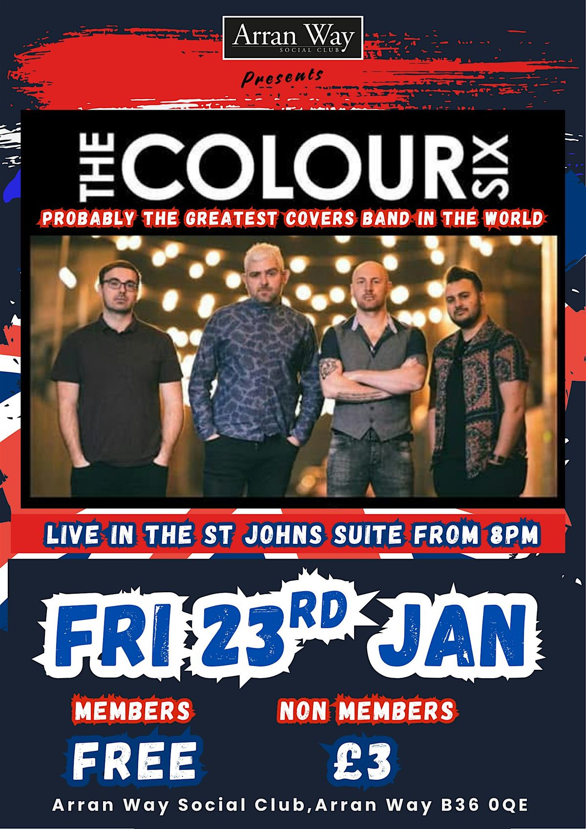 Welcome to The Colour Six @ Arran Way Social event happening at Arran Way Social Club on February 21, 2026 at 8:00 PM (Europe/London time).