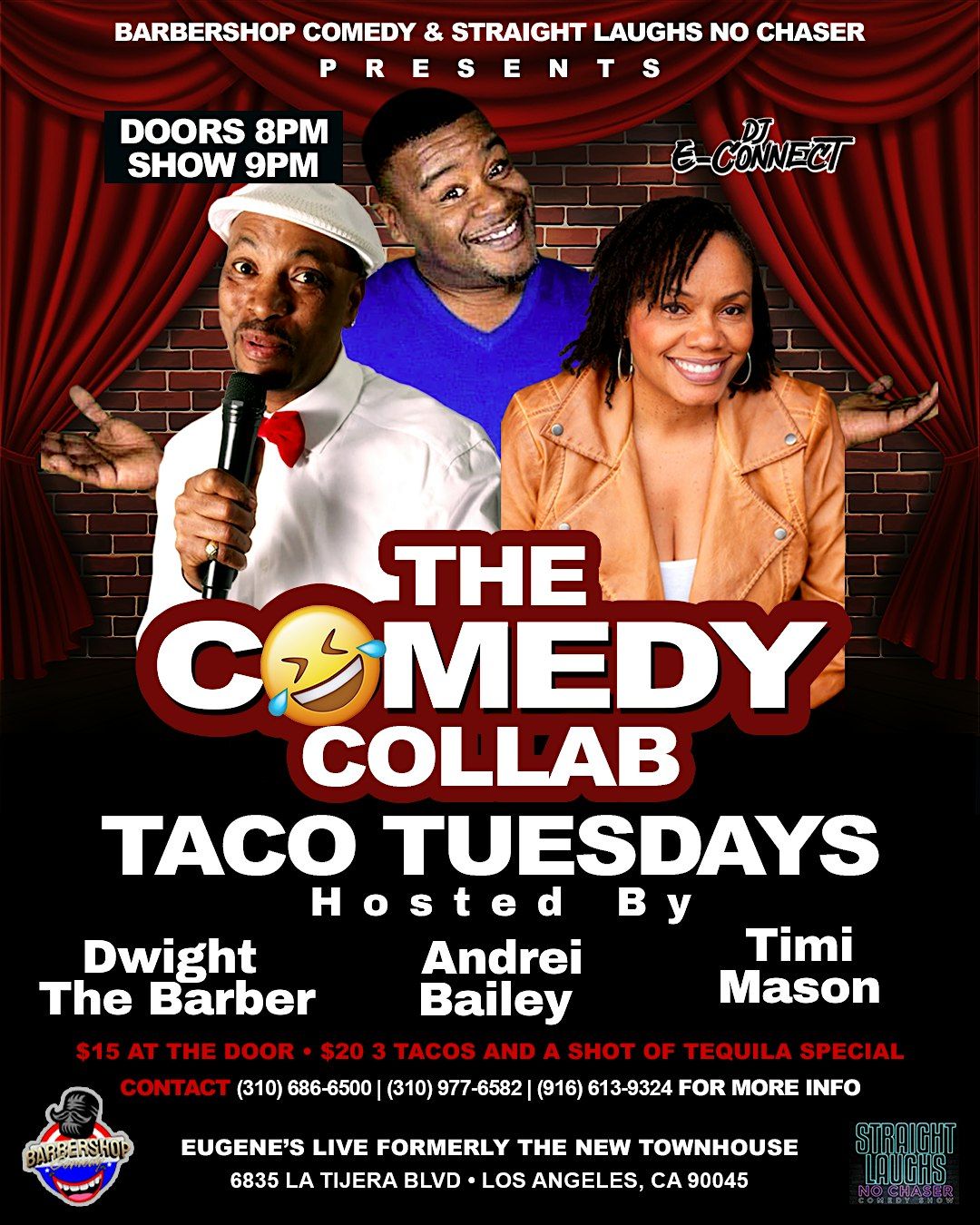 Tuesdays are made for Tacos,Tequila,& Jokes and we've got all three!!! Join The Comedy Collab every Tuesdays at Eugene's Live