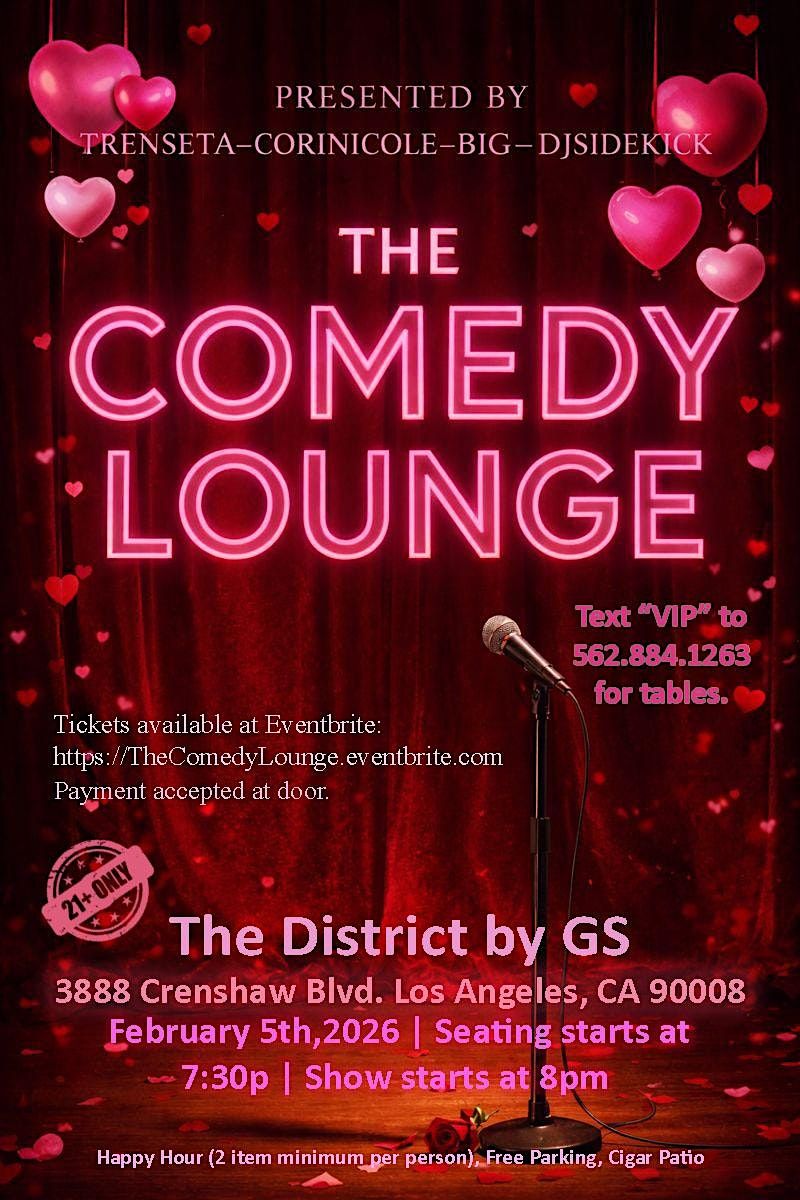 kickstart the year at The Comedy Lounge on February 5th, 2026 at The District by GS (3888 Crenshaw Blvd., Los Angeles, CA 90008)