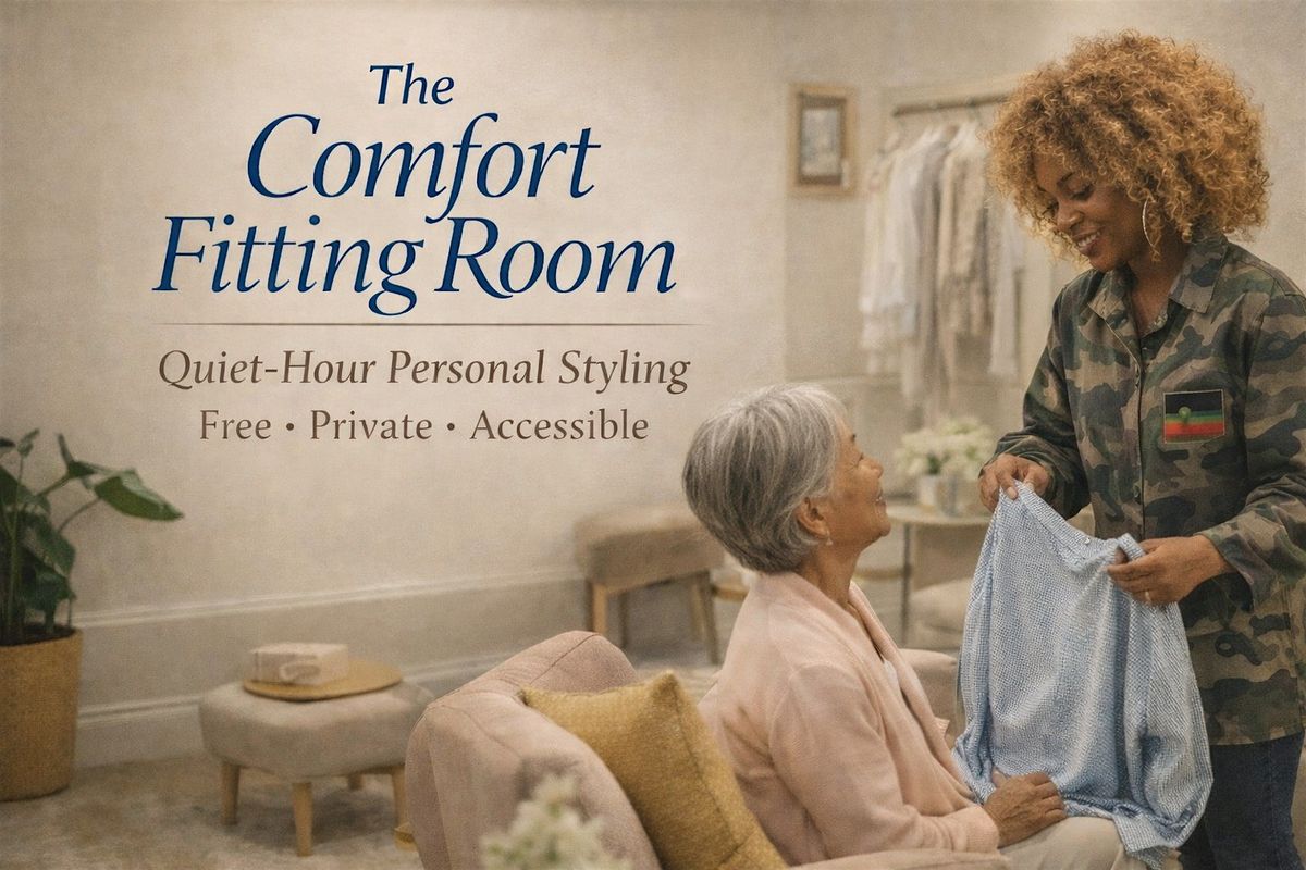 The Comfort Fitting Room is a quiet, one-on-one personal shopping and styling experience designed for people who often feel overlooked, rushed, or uncomfortable in traditional shopping environments.