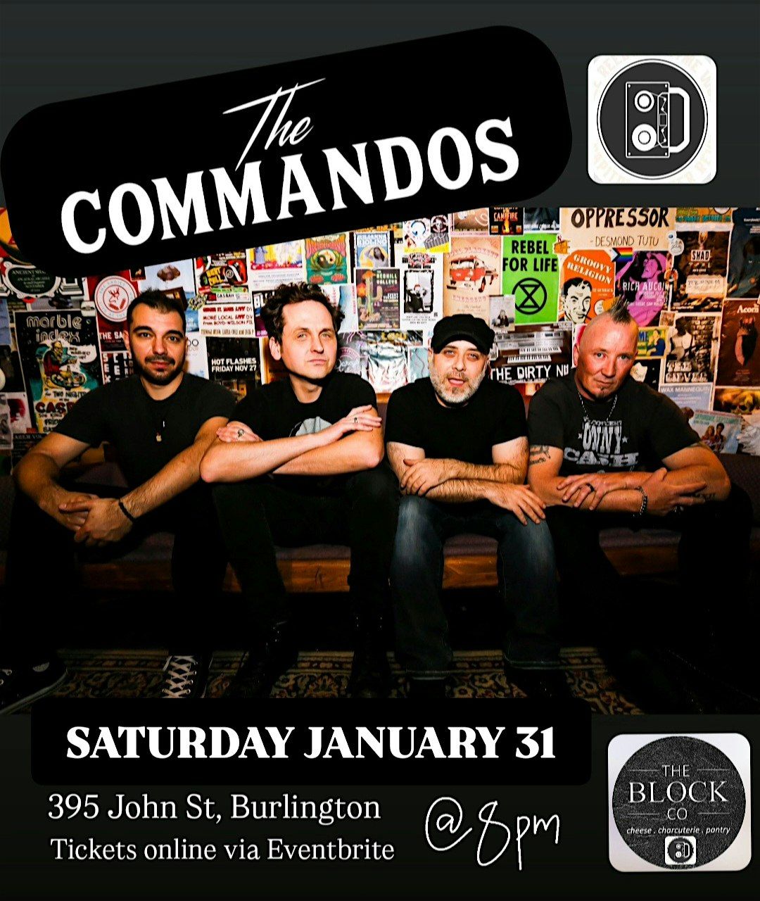 The Commandos — Hamilton’s own 4-piece 90s alternative & punk rock cover machine — are tearing into Burlington with an electrifying night of sing-alongs, crowd-shaking riffs, and good vibes only. ✨