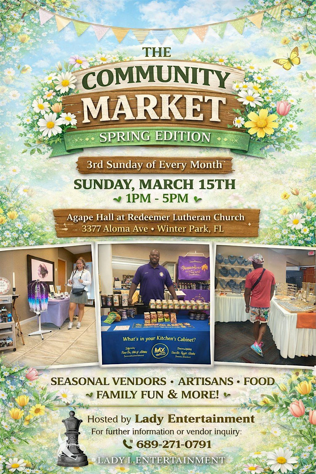 Join us for The Community Market Spring Edition! This in-person event is the perfect way to welcome spring with fresh goods, crafts, and great vibes. Meet local vendors, enjoy tasty bites, and connect with your community in a fun and relaxed atmosphere. Don't miss out on a day full of discoveries and good times!