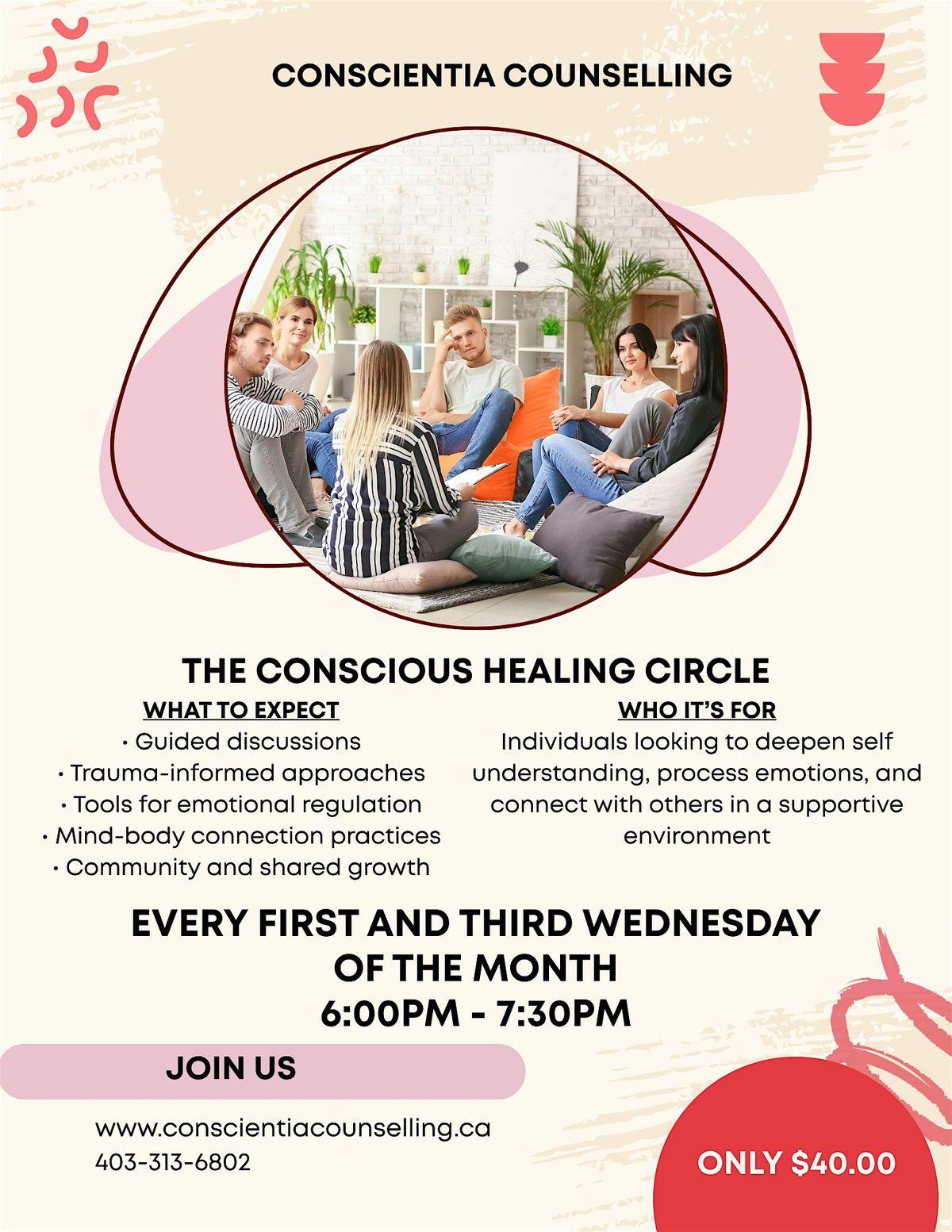 Join us in person for a warm, welcoming space where we come together to share, heal, and grow. This circle is all about connection, mindfulness, and embracing your true self. Whether you're curious or committed, it’s a perfect place to feel seen and supported.