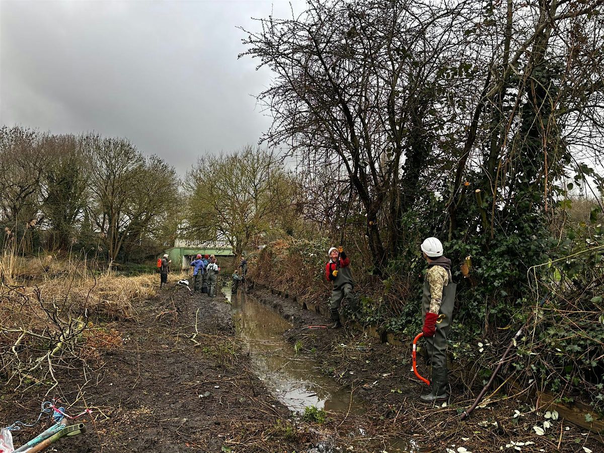 This will be our FINAL SESSION working along the edge of the River Crane (off Hospital Bridge Road) to reinstate a ditch system and create a bund as habitat for water voles. This project is in partnership with FORCE and LBRuT.