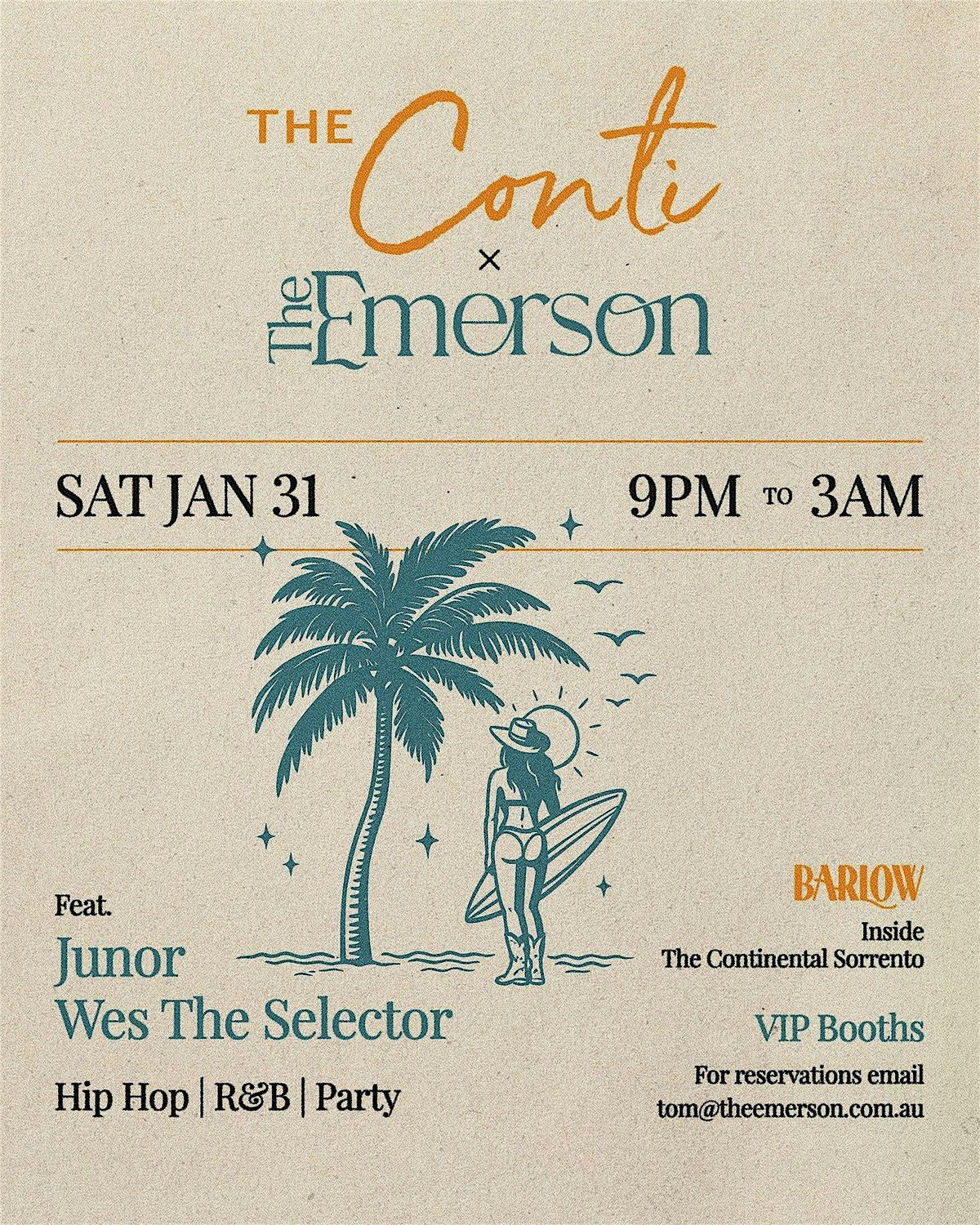 Come join us for a night of fun at The Continental Sorrento. Get ready for an exciting event where The Conti meets The Emerson.