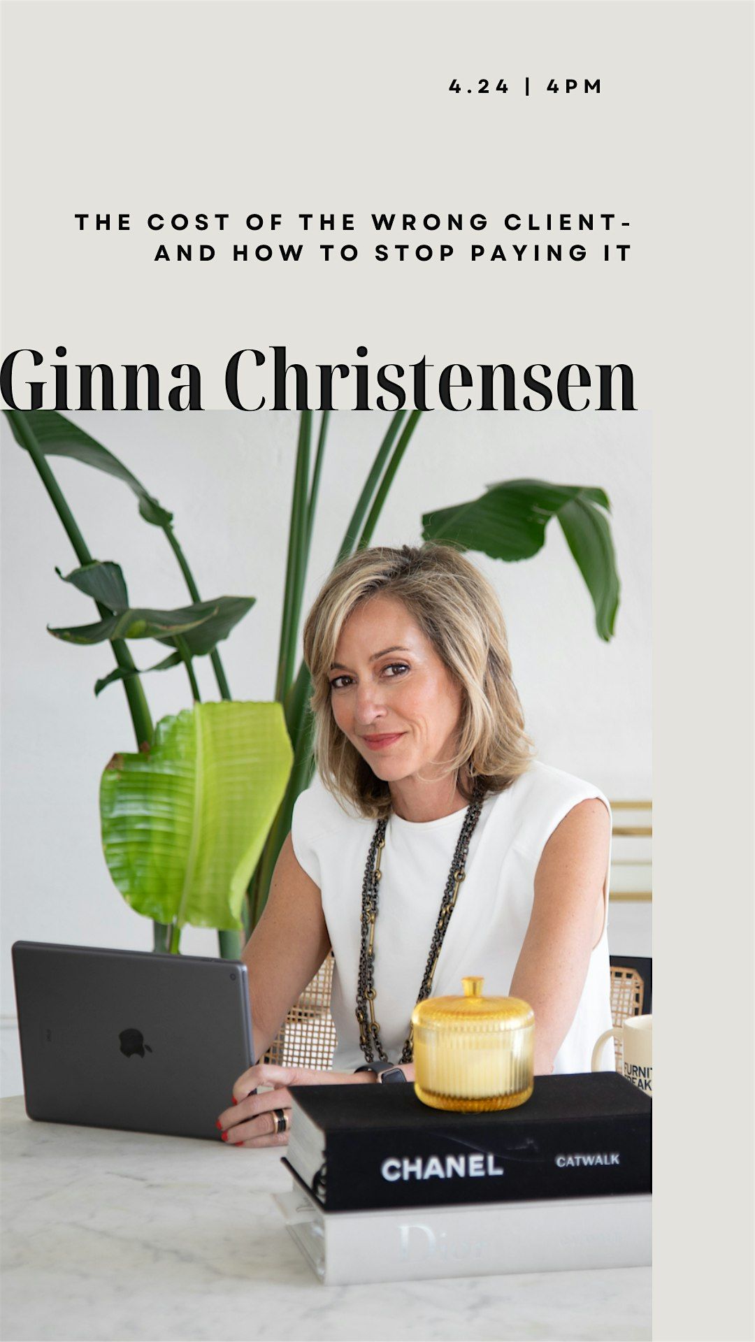 This is a condensed, highly practical session designed for interior designers who feel stretched thin or burnt out from working with the wrong clients. The workshop focuses on the hidden cost of misaligned clients—lost time, creative energy, and revenue—and helps designers get clear on who they work best with and why.