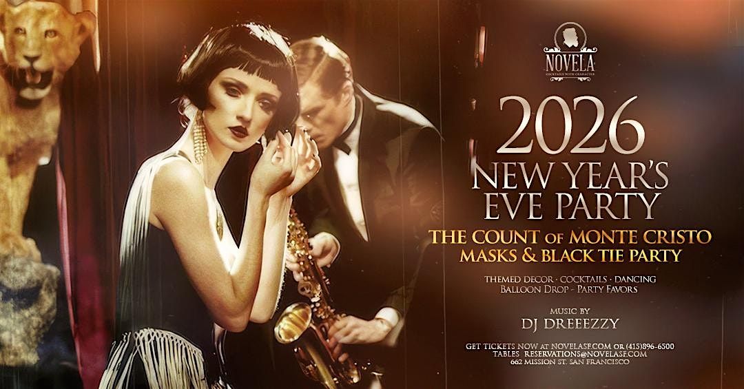 Step into a world of intrigue, elegance, and high society as Novela presents its 2026 New Year’s Eve Party: The Count of Monte Cristo — Masks & Black Tie Celebration.