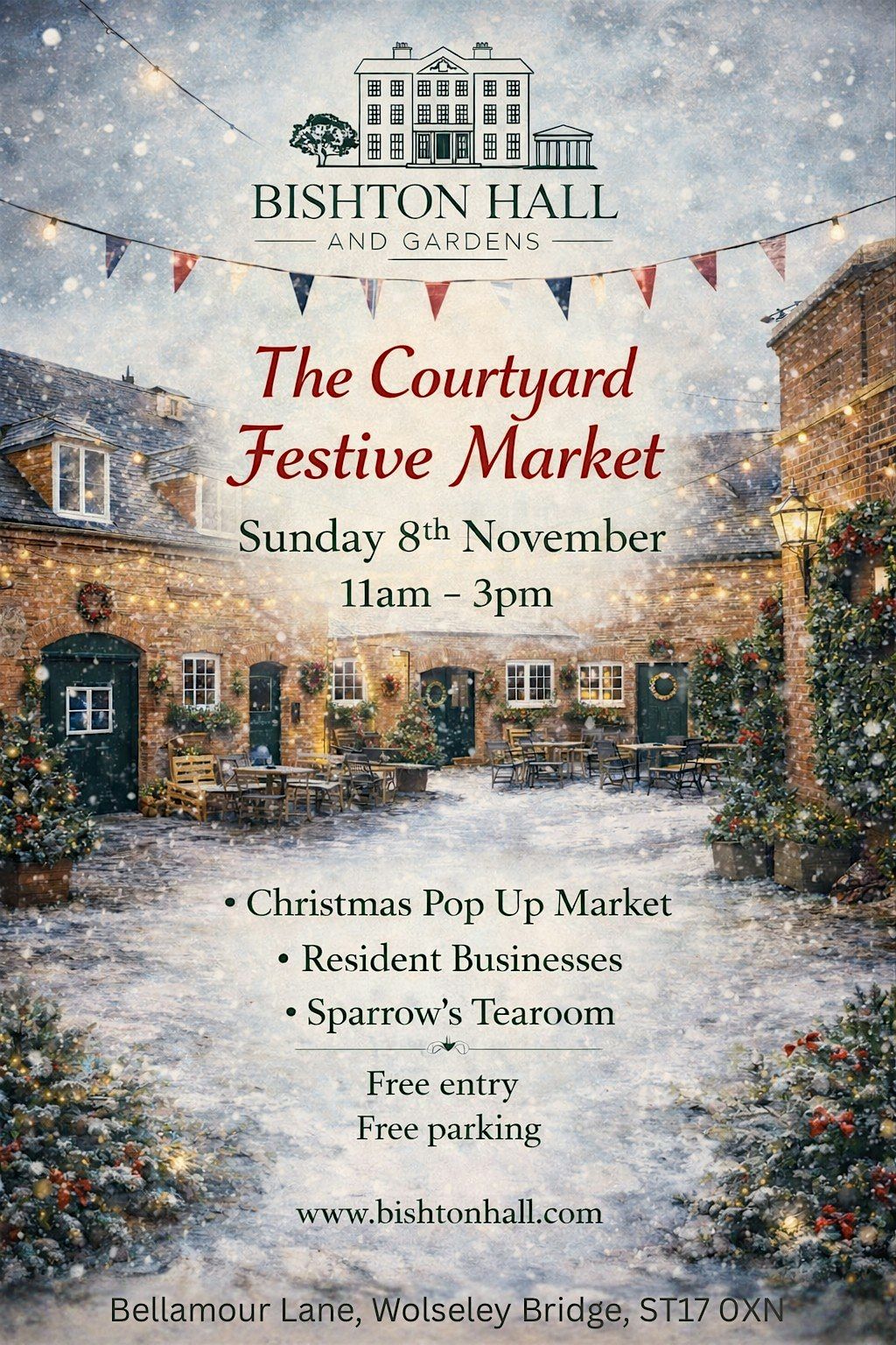 Join us at our Courtyard Festive Pop Up Market. Vendors must provide own gazebo/table/chair etcSunday 8th November