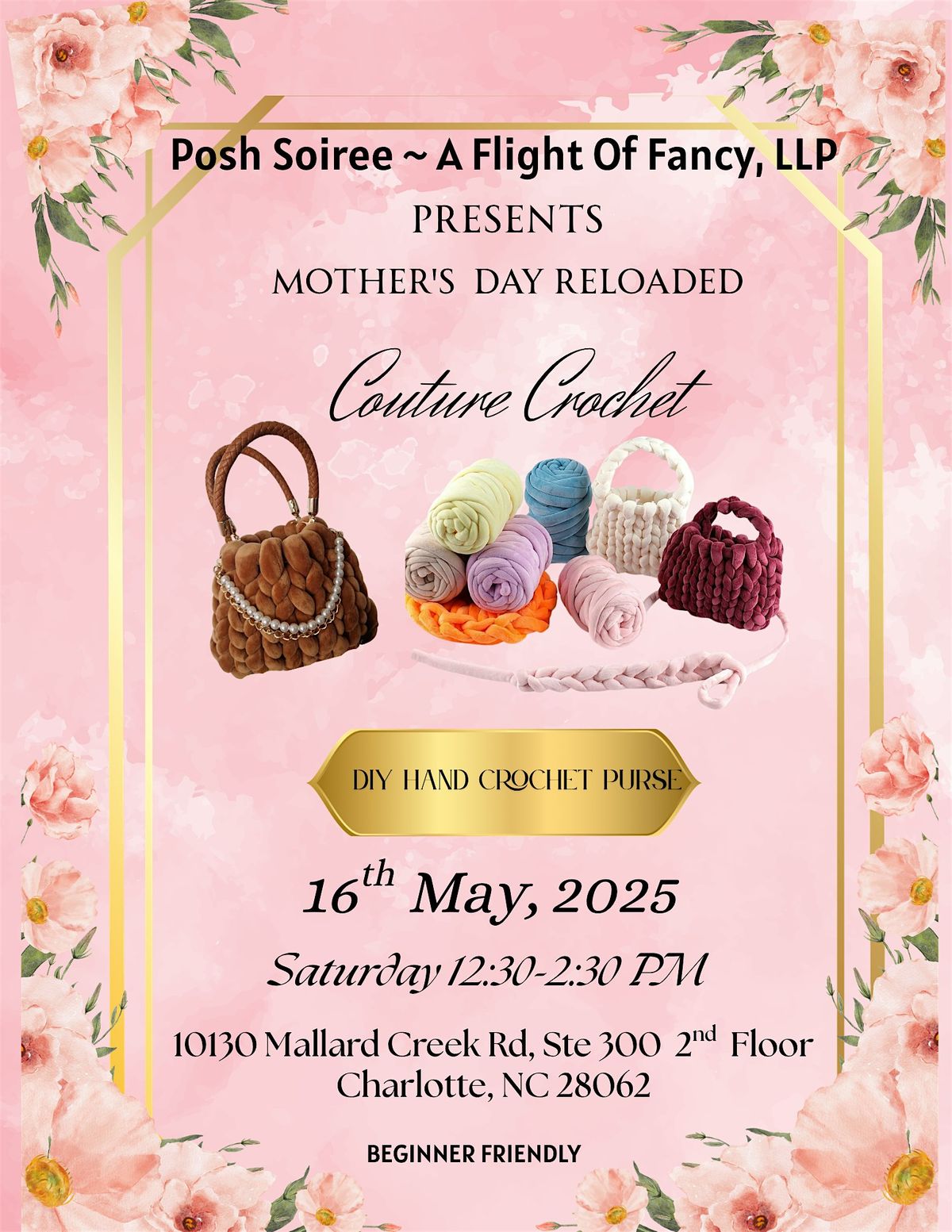 The Couture Crochet for Mother’s Day Reloaded, a hands on DIY workshop where women come together to create their own hand crochete purse.About this Event