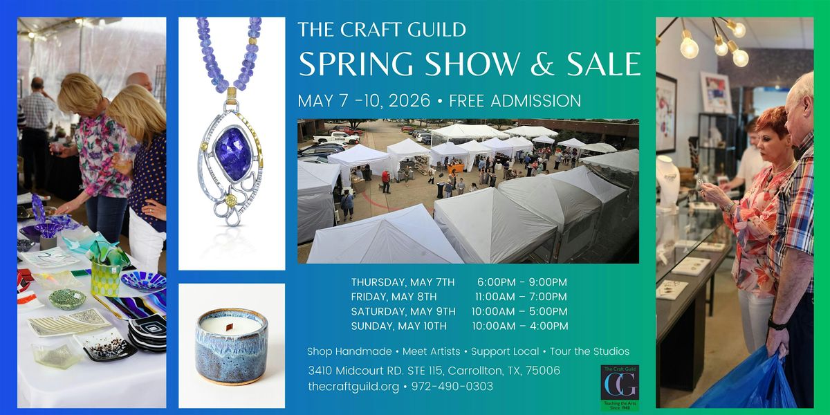 The Craft Guild of Dallas invites you to our annual Spring Show & Sale, a four-day event celebrating the work of talented local artists across a wide range of mediums, including jewelry, glass, ceramics, fiber arts, painting, woodworking and more.