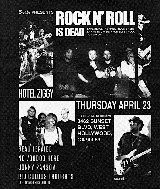 An evening celebrating The Cranberries including Zombie, Linger, I Can't Be With You, Dreams and more.....Performed by a young and talented Ridiculous Thoughts features live violins. Chill Vibes only. Come to Hotel Ziggy. Tickets $10 - Visit the bands IG for more info RTCRANBERRIESTRIBUTE