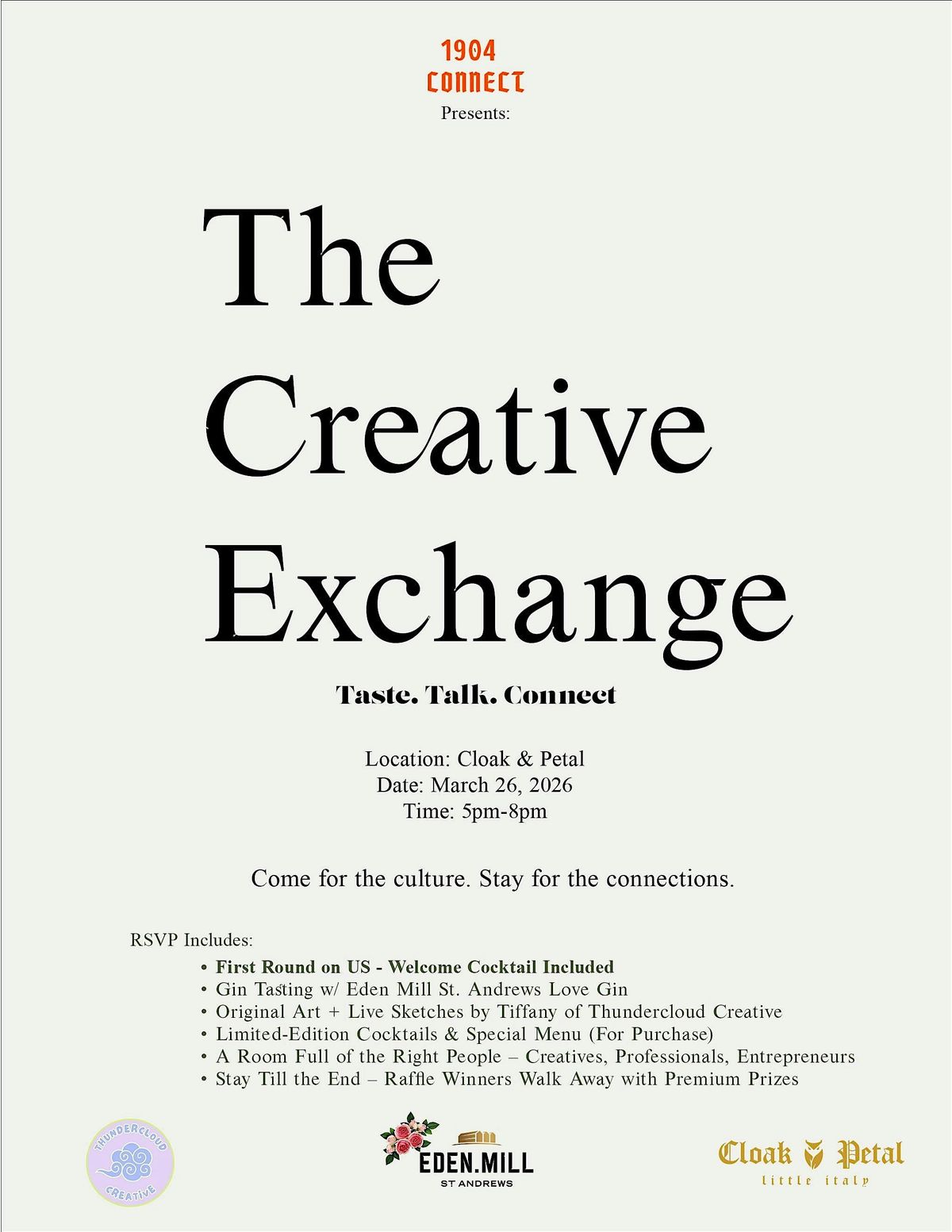 By RSVPing, you consent to being photographed or recorded during The Creative Exchange and allow 1904 Connect to use this content for promotional and marketing purposes across all platforms.