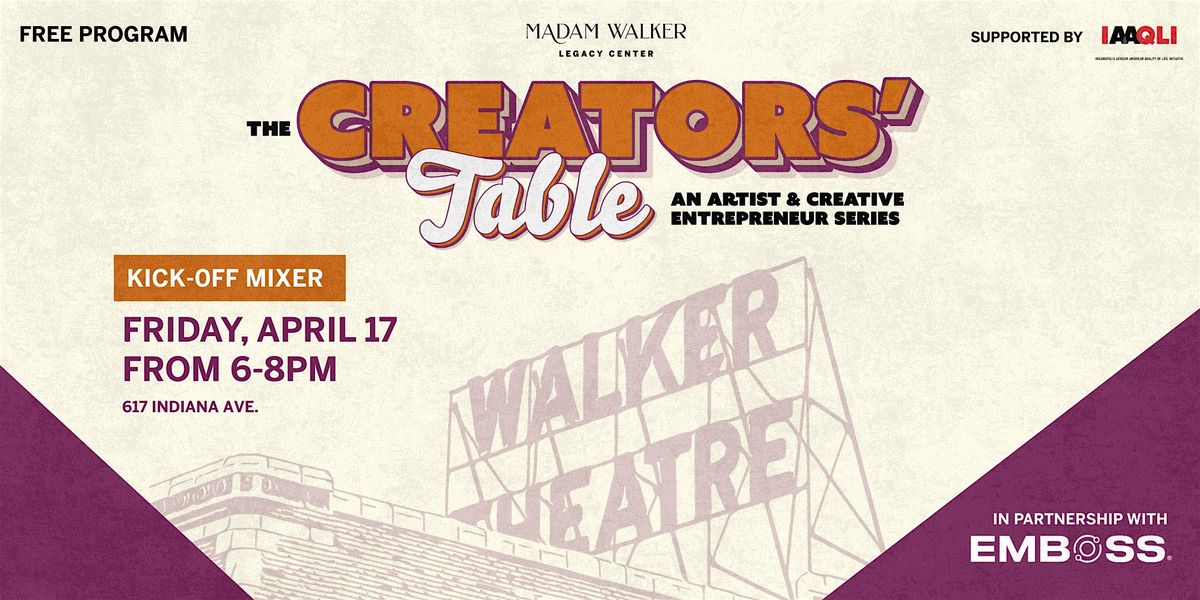 The Creators' Table: An Artist & Creative Entrepreneur Series is a new program of the Madam Walker Legacy Center, in partnership with EMBOSS®, designed to support and uplift Black-owned businesses through both financial investment and strategic development.