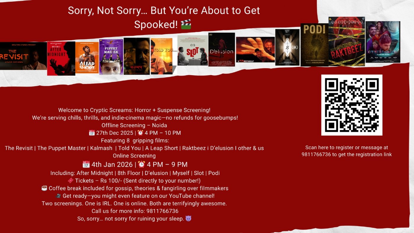 Welcome to Cryptic Screams: Horror + Suspense Screening!