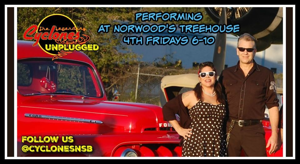 4th Fridays up in the Treehouse, Jason Lee and Linda Marie, will be playing a mix of Cyclones tunes and your favorite hits from the 50's on and some of your favorite tunes!Thy play a wide variety of music and are happy to take your requests. The Cyclones are known for their strong vocals, guitar, percussion and mandolin, adding a little "southern twist" to their rockabilly style.