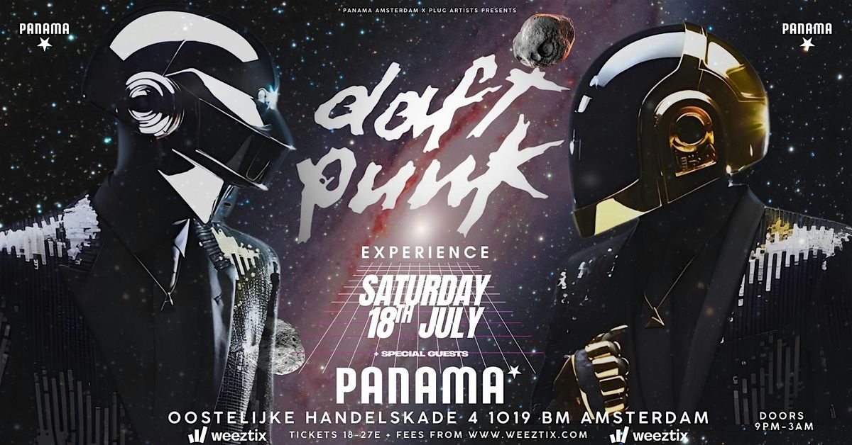After the success of their 'Alive 25' Tour, The Daft Punk Experience are embarking on their 'Around The World' Tour for 2026/ 27' and the the robots will be landing at the legendary club Panama Amsterdam for a massive summer party on July 18th for one night only!