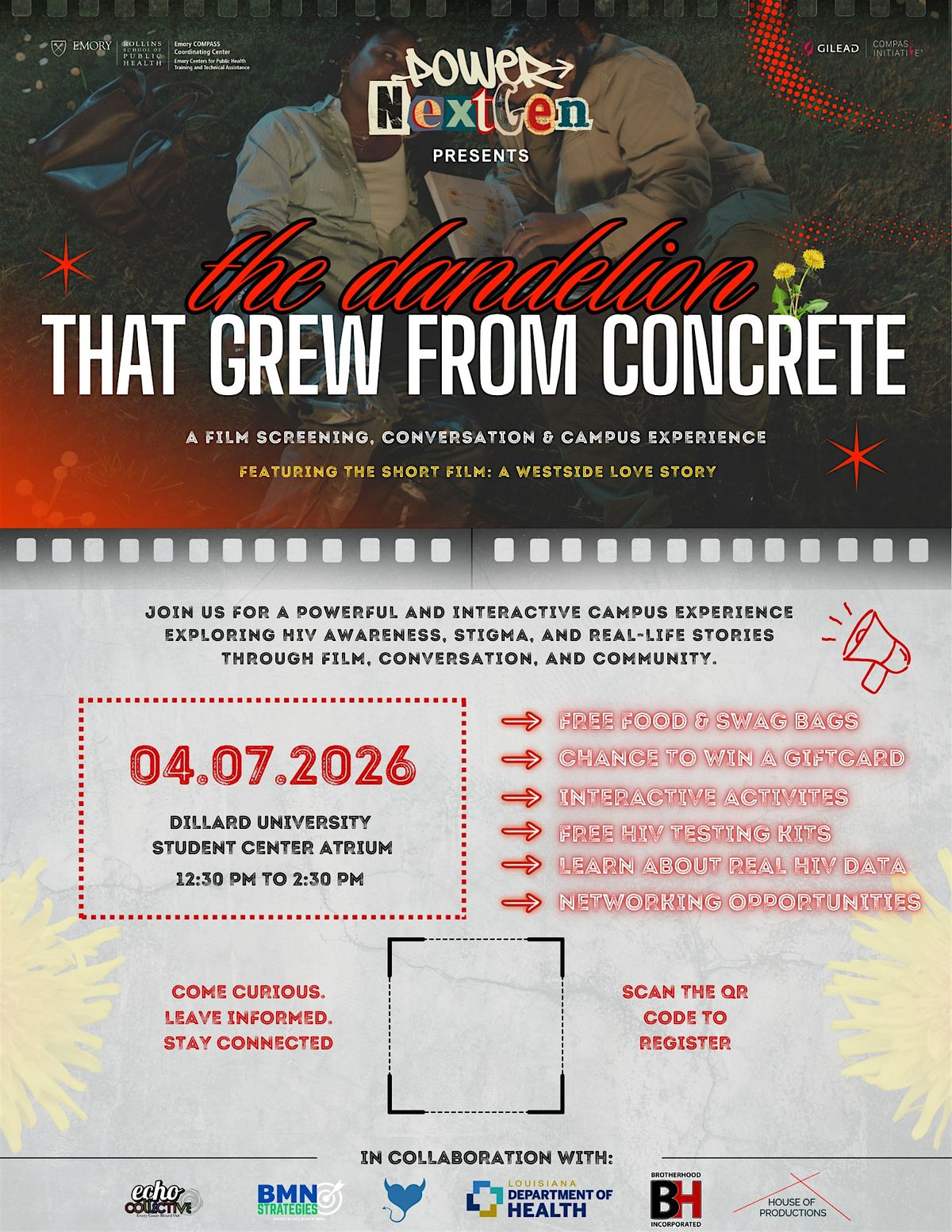 Join us at Dillard University for The Dandelion That Grew from Concrete, a dynamic campus experience that brings together film, conversation, and community to explore HIV awareness, stigma, and the power of storytelling.