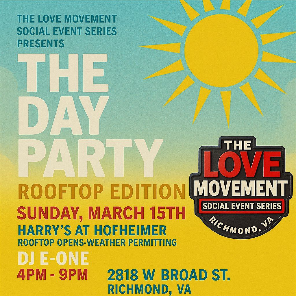 The Day Party returns—this time taking it to the sky. Join us as we kick off rooftop season at Harry’s at Hofheimer with DJ EOne setting the vibe all evening. If the weather cooperates, the rooftop officially opens for the season, giving RVA the perfect Sunday escape.