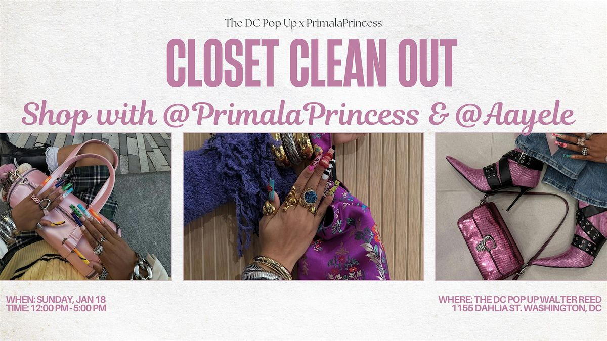 Welcome to PrimalaPrincess and Aayele's Closet Clean Out! Join us at The DC Pop Up at Walter Reed on January 18, 2026 at 12:00 PM for a fabulous shopping experience with @PrimalaPrincess and @Aayele.