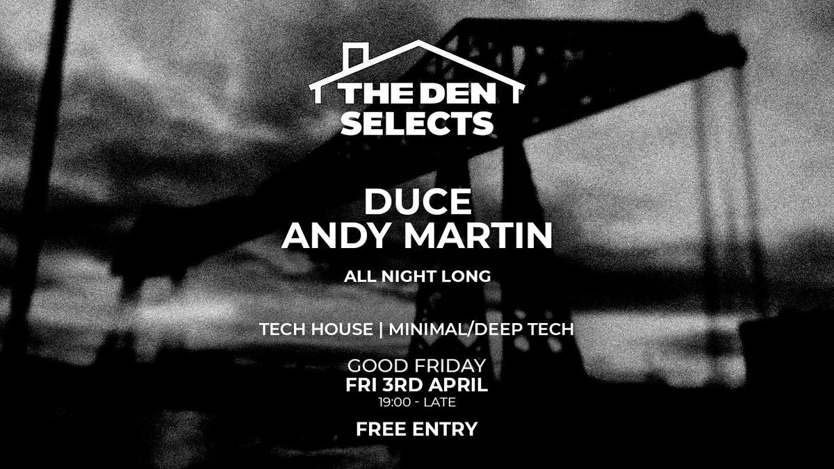 This week we bring Duce & Andy Martin bringing the Tech House and Minimal sound to The Den!FREE ENTRY ALL NIGHT LONG