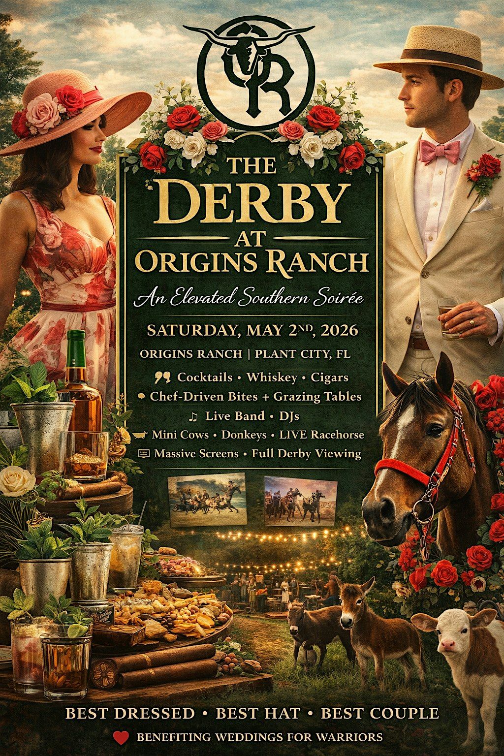Tampa’s most stylish Derby party- cocktails, photo ops, cigar roller, live music, horses & big screens. Benefiting Weddings for Warriors.