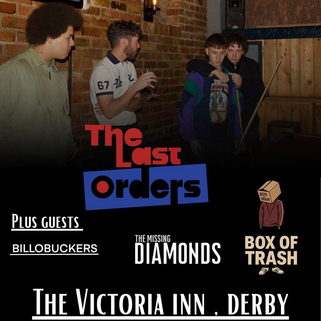 The Last Orders headline this huge gig at the Victoria inn derby supports from Billobuckers The Missing Diamonds and Box Of TrashArtists