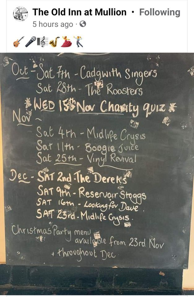 Christmas celebrations at Old Inn Mullion, all month long with some fabulous bands to sport.Time TBC for us Dereks on 2nd
