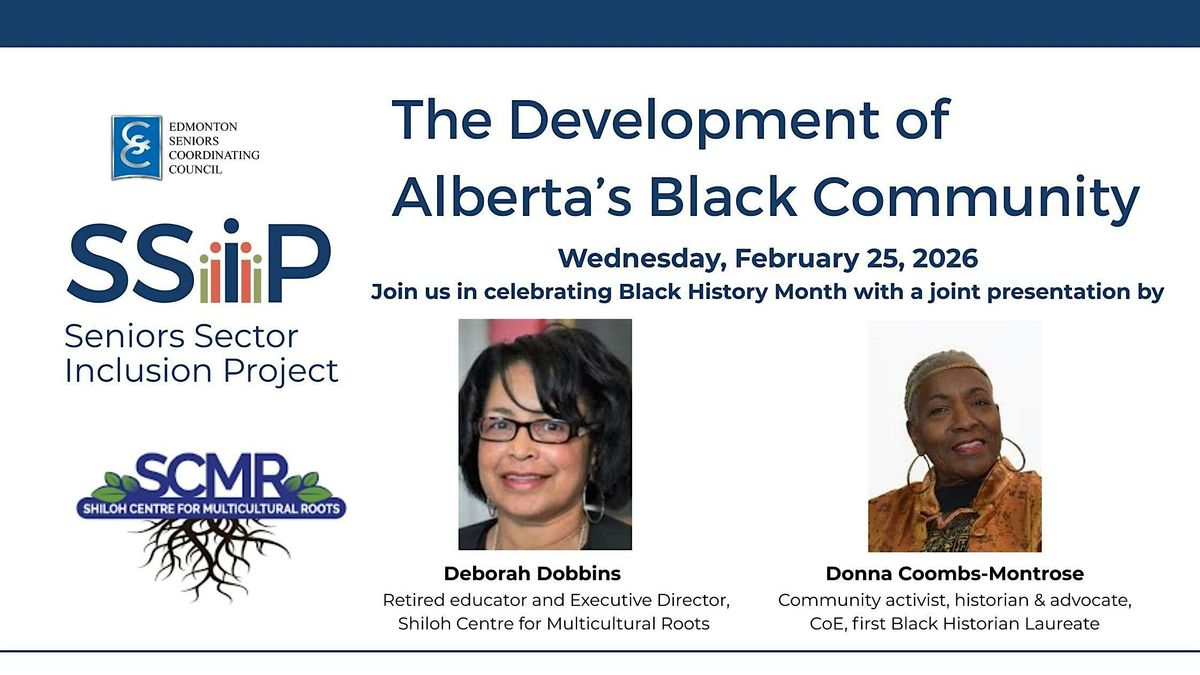 Join us this February to learn about the Development of Alberta’s Black Community with Deborah Dobbins and Donna Coombs-Montrose, as they share the history of the pre and post – emancipation experiences of Black people’s arrival in Western Canada from the Southern United States. This session will explore the realities of illegal detention, the establishment of settlements and communities in the early1900’s/1920s, exploitation and labour faced by many and the ongoing development of the African Descent Diaspora.