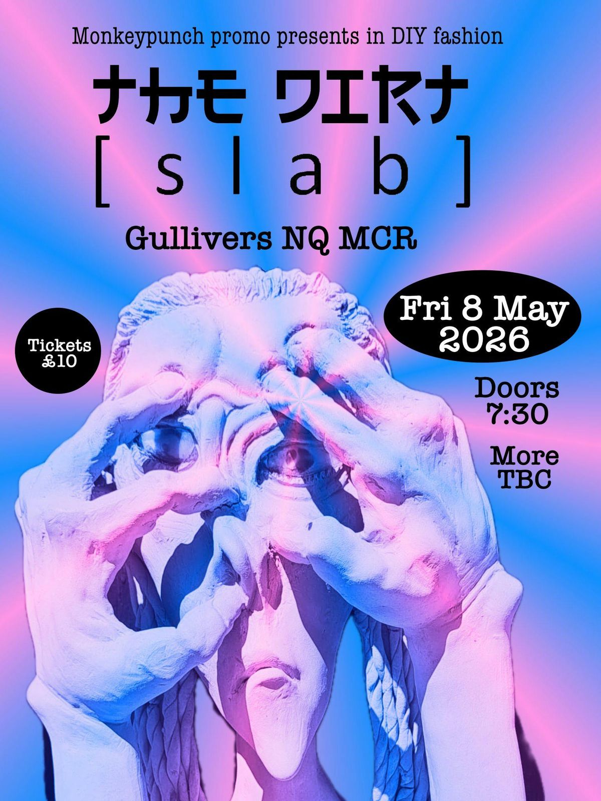 Monkeypunch promo brings together 2 mega noise specialist from the Manchester area. In this dual headliner of murual.support. Both bands pack a gracious racket!. The Dirt bring their unique genre bending sonic psychpunk to the table while Slab offer large servings of heavier sounds. Both have new releases, both were louder than war 5* albums of the week on release. This is a meeting of minds, frienships and wall to wall soundwave collisions. Disclaimer:
