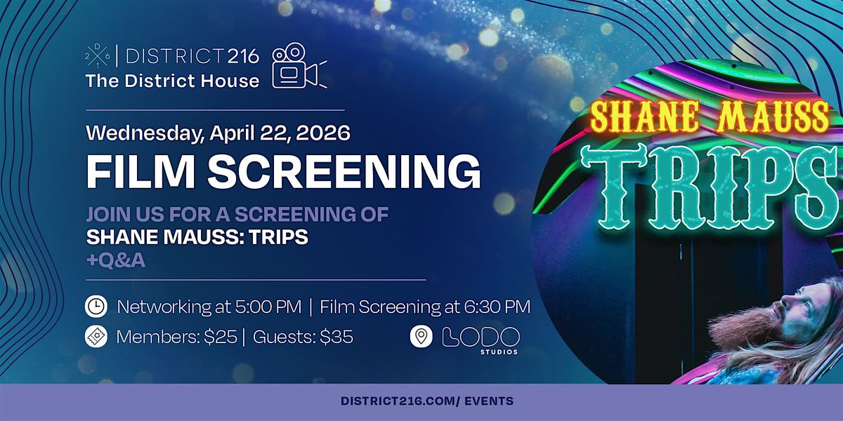Description: Award-winning comedian Shane Mauss has dropped a two-part psychedelic comedy special 'TRIPS' and is coming back to District 216 to for an intimate screening and Q&A before it's available worldwide.